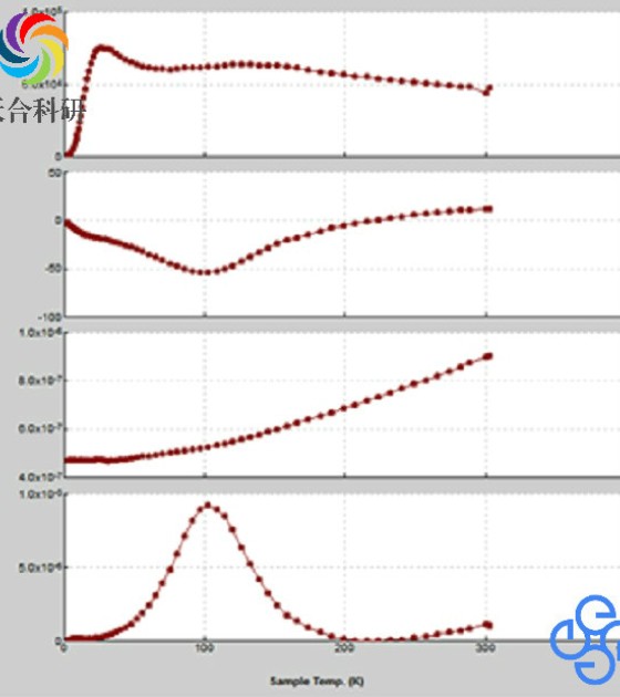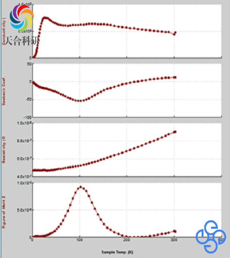 热输运选件可以同时测量样品的热传导系数、Seebeck系数(热电势)和交流电阻率,并根据这三个数据计算出热电材料的品质因子。样品测量采用样品托的方式,并配套有专用的样品安装工具